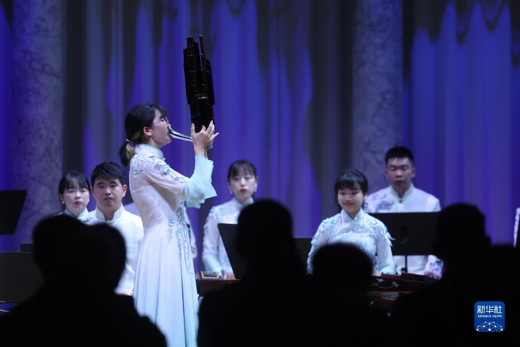 10月2日,在斯洛文尼亞盧布爾雅那的盧布爾雅那大學(xué)音樂(lè )學(xué)院,南京大學(xué)民族樂(lè )團成員表演笙獨奏。