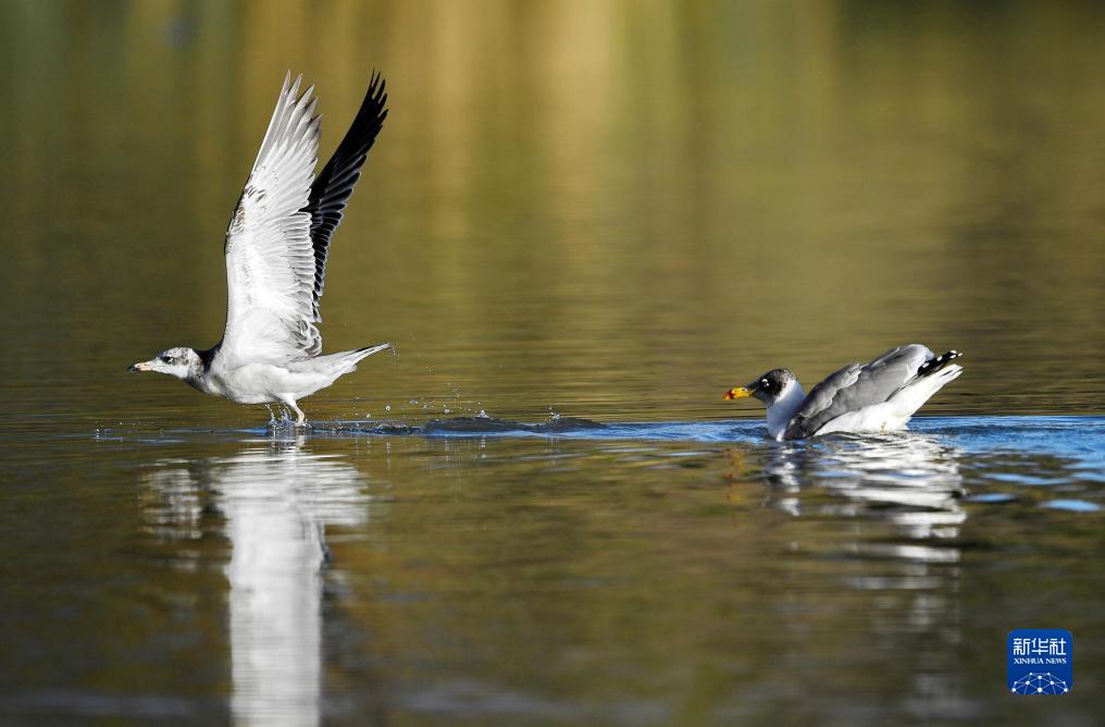 金秋十月,漁鷗在西藏拉薩市國家級自然保護區拉魯濕地里嬉戲,惹人喜愛(ài)。