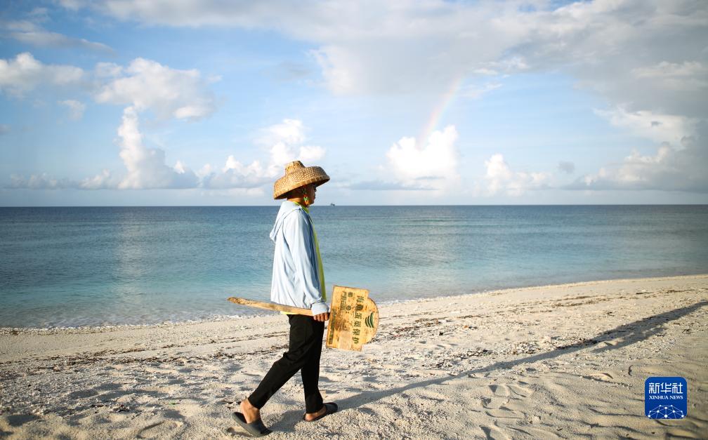 清晨七點(diǎn),陽(yáng)光灑落在海南省三沙市七連嶼北島的細沙上,這里是南海海龜集中的產(chǎn)卵地之一。黃程戴好草帽向北島的沙灘走去,開(kāi)啟一天的海龜巡護工作。