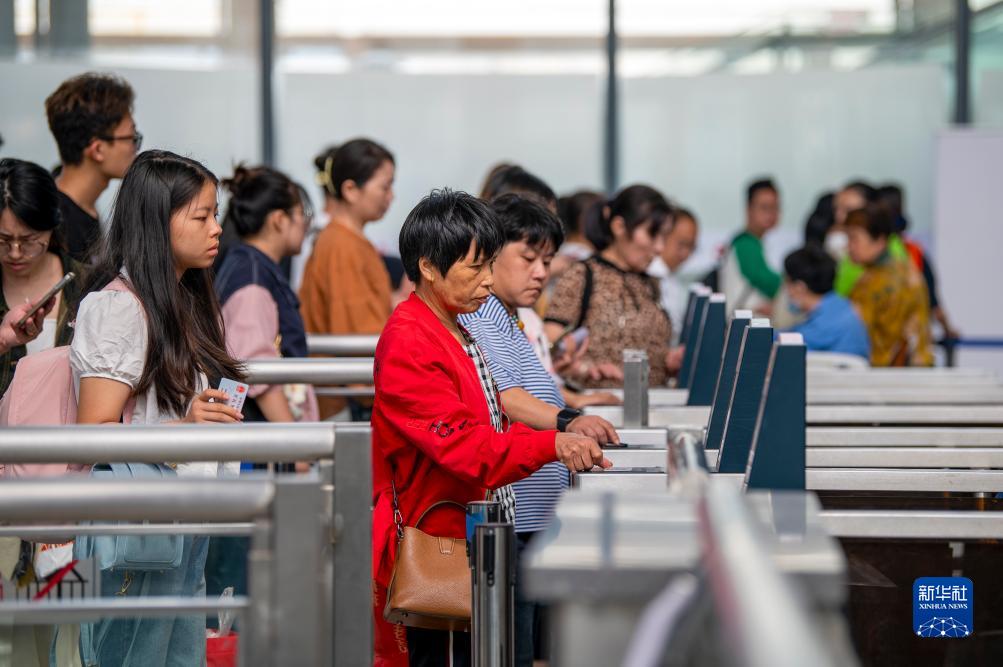 10月5日,鐵路浙江金華站,旅客有序檢票進(jìn)站。