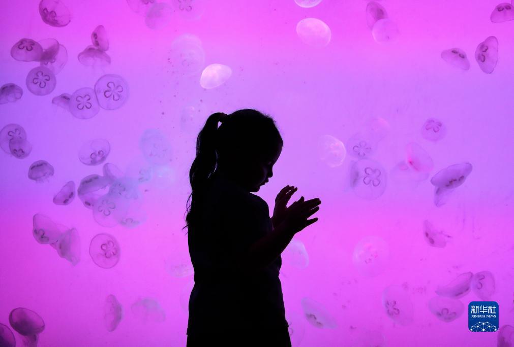 10月5日,小朋友在遼寧省沈陽(yáng)海洋探索中心游覽。