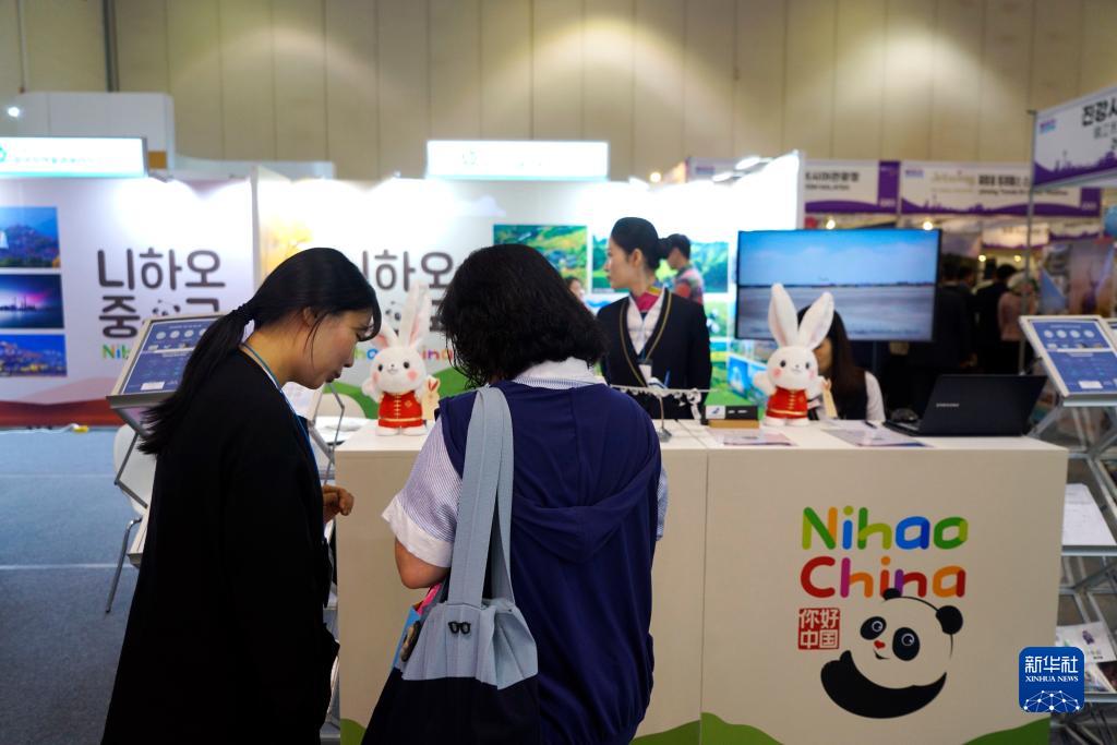 10月5日,人們在韓國釜山國際旅游展中國展位參觀(guān)。