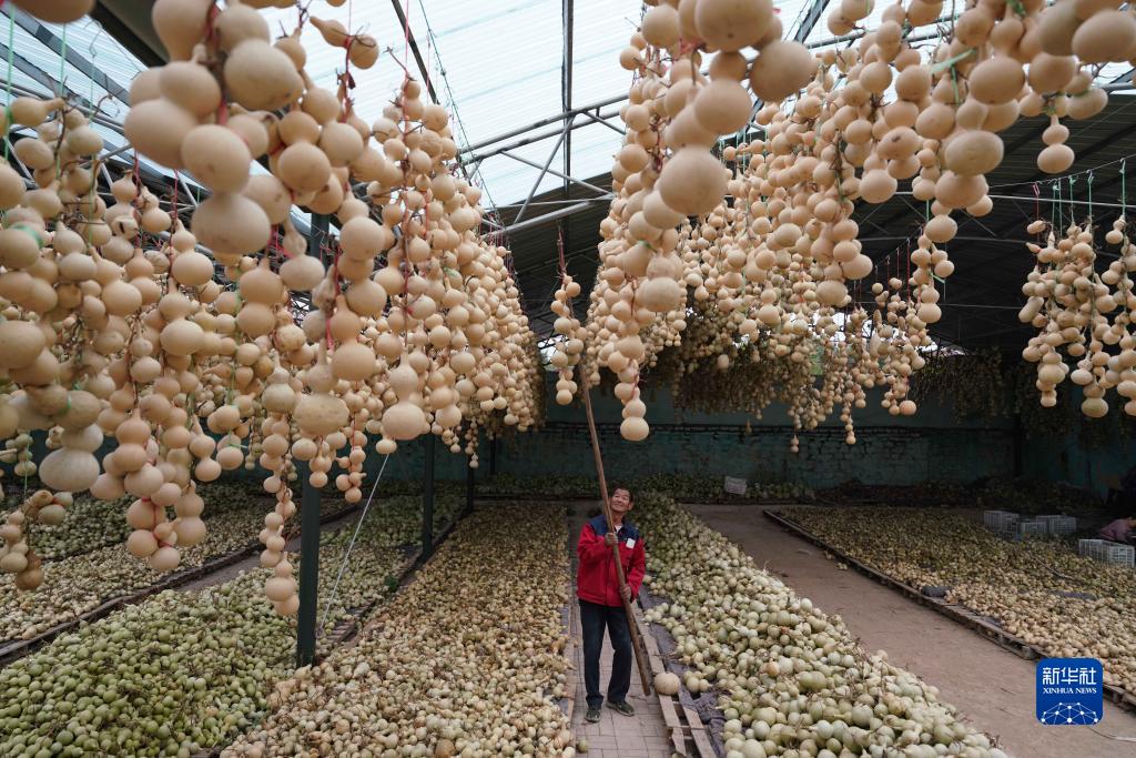 10月5日,河北省邢臺市信都區會(huì )寧鎮張爾莊村村民在整理葫蘆。