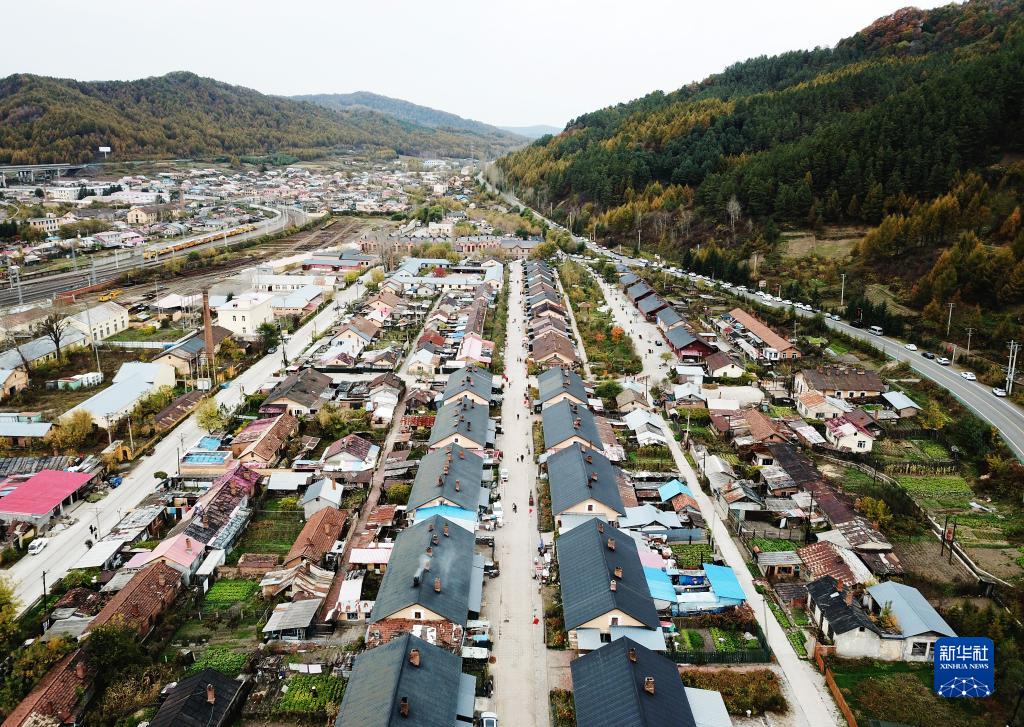 這是10月3日拍攝的橫道河子鎮保護建筑街區(無(wú)人機照片)。