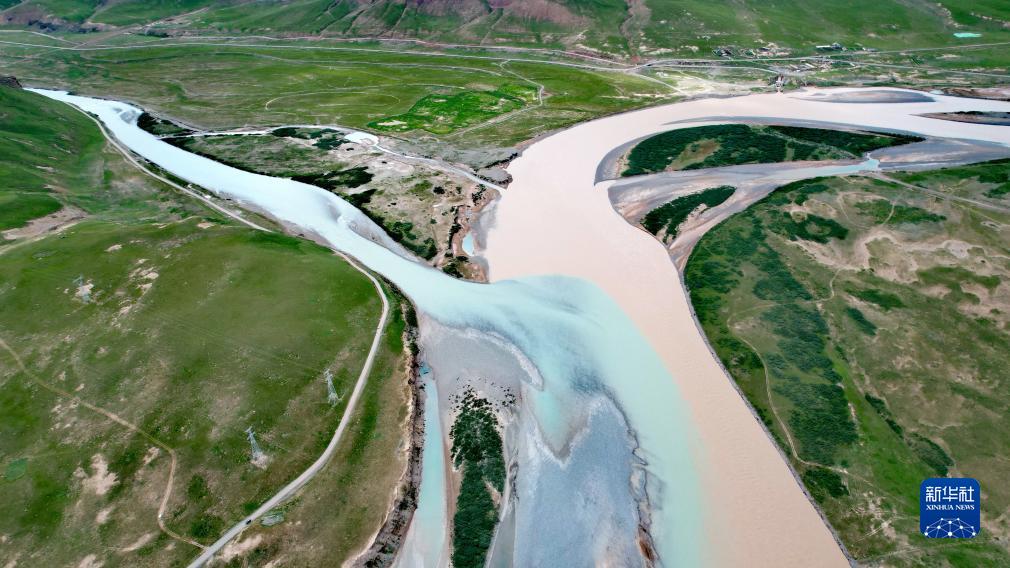 通天河支流聶恰曲的辮狀河道(2023年7月25日攝,無(wú)人機照片)。辮狀河流是一類(lèi)由多個(gè)不規則沙洲分割而形成的淺水多汊道系統。長(cháng)江正源沱沱河、北源楚瑪爾河下游、南源當曲下游及其支流布曲、尕爾曲,以及長(cháng)江干流通天河上游河段,都以辮狀河道為主,組成了一個(gè)龐大的高原辮狀河群。