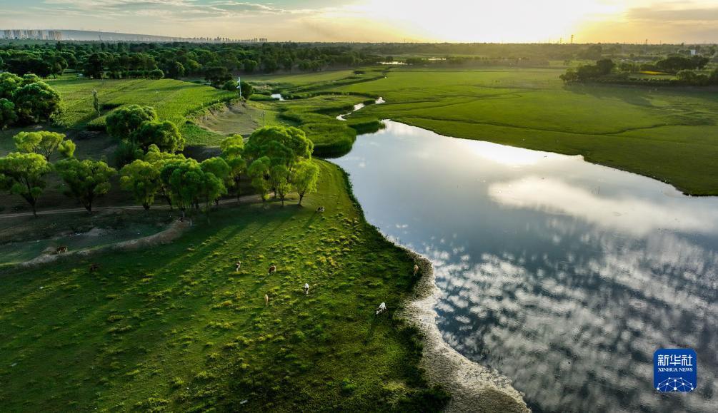 這是2023年8月18日拍攝的陜西省榆林市靖邊縣蘆河河面(無(wú)人機照片)。近年來(lái),當地政府不斷加大對蘆河治理和水環(huán)境保護力度,推行河長(cháng)履職問(wèn)責制,全面提升蘆河兩岸生態(tài)園林工程,以實(shí)現生態(tài)、宜居、人文三個(gè)層次目標。