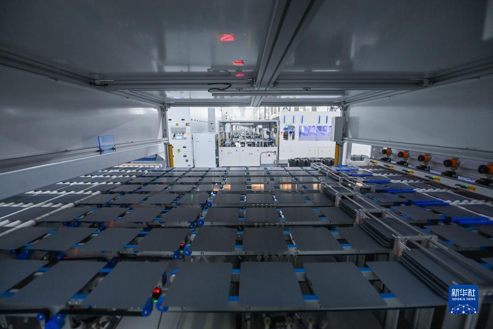 這是中國浙江東陽(yáng)橫店集團東磁股份有限公司的光伏組件數字化生產(chǎn)車(chē)間(4月18日攝)。
