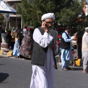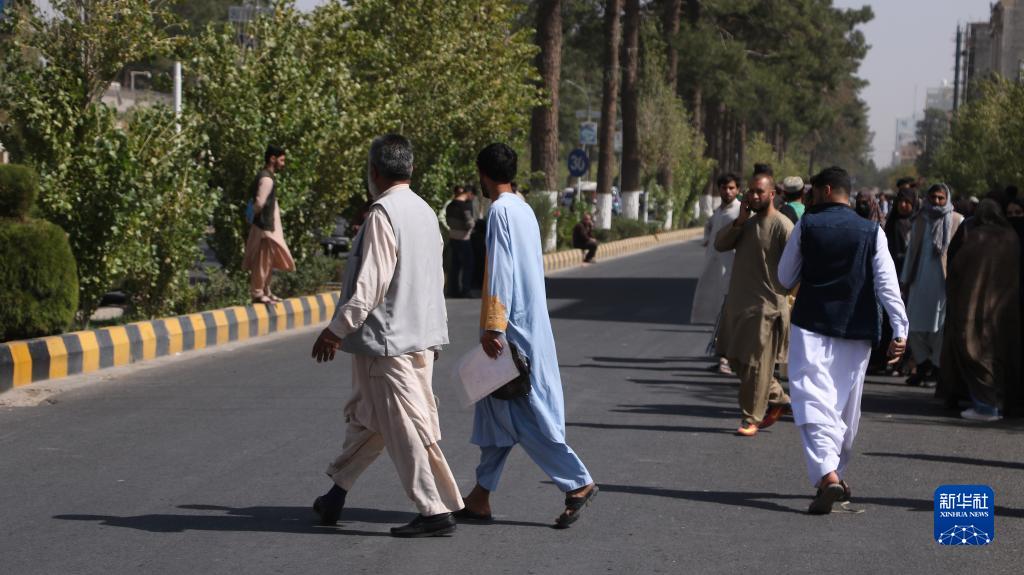 10月7日,阿富汗西部赫拉特省赫拉特市居民在街道上躲避地震。