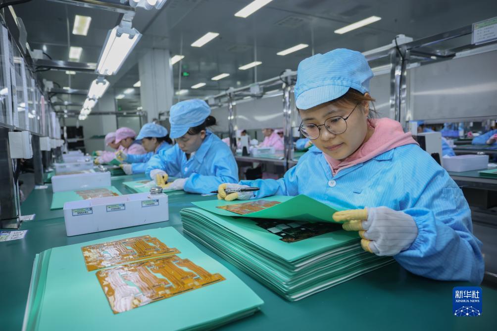 10月7日,工人在四川省遂寧市高新區一家電子企業(yè)的生產(chǎn)線(xiàn)上作業(yè)。