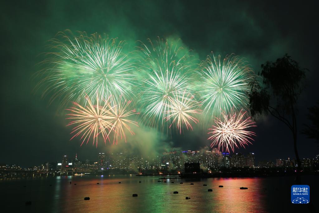 當日,首爾國際煙花節在韓國首爾汝矣島漢江公園一帶舉行,絢麗煙花點(diǎn)亮了首爾夜空。新華社記者 王益亮 攝