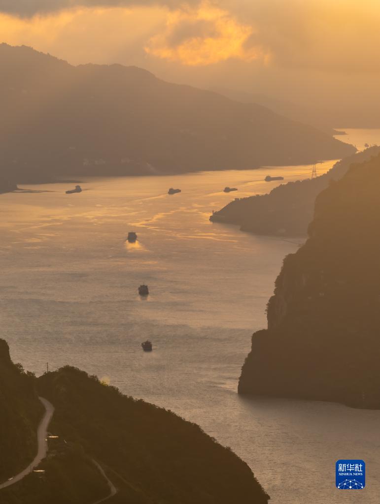 10月8日,船舶行駛在長(cháng)江三峽西陵峽湖北省宜昌市秭歸縣水域。