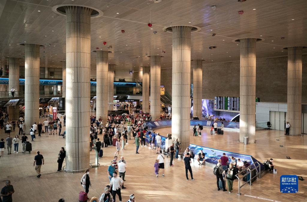10月8日,旅客在以色列特拉維夫附近的本-古里安國際機場(chǎng)候機出行。