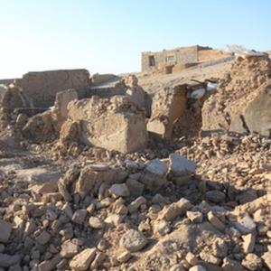 這是10月8日在阿富汗赫拉特省津達詹區拍攝的一處村莊的震后景象。