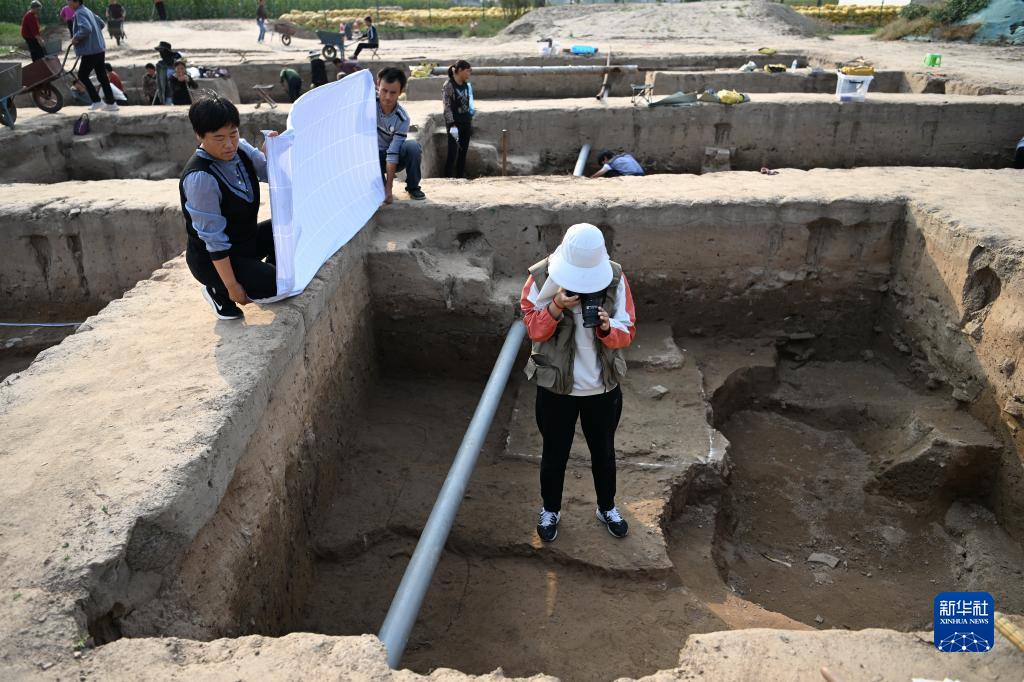 10月8日,考古隊員在河北省隆堯縣柏人城遺址第四次考古發(fā)掘現場(chǎng)拍照記錄。