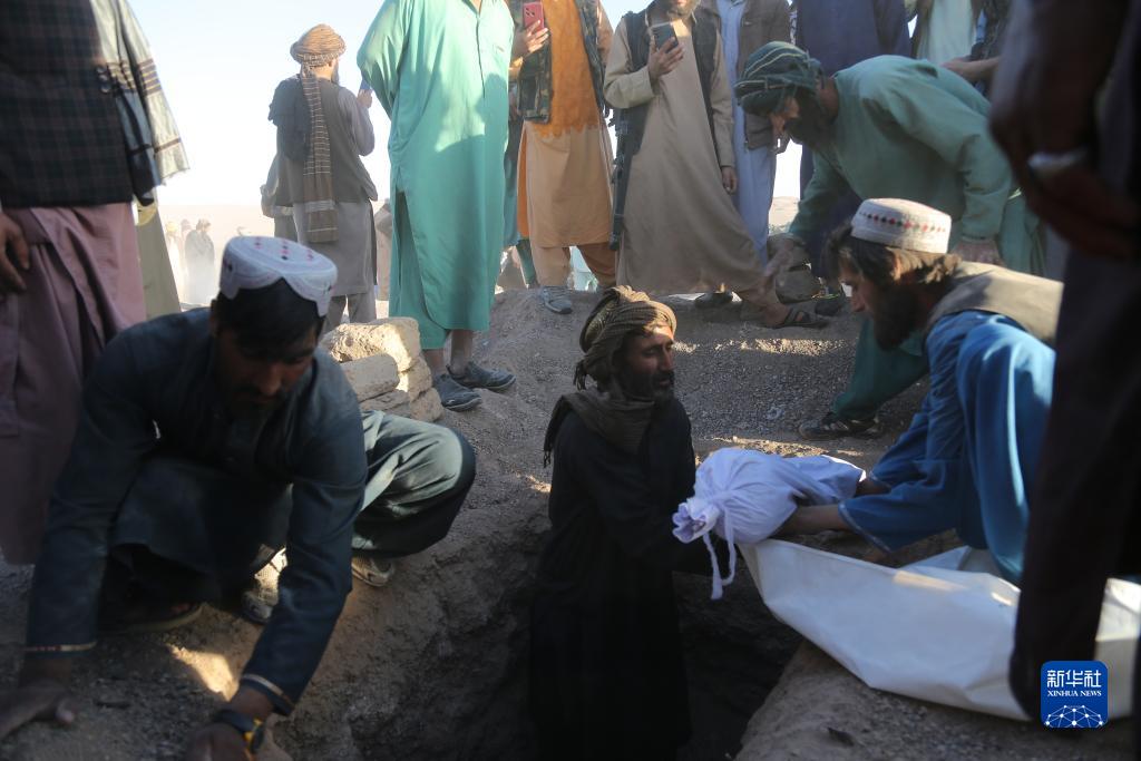 10月9日,在阿富汗西部赫拉特省津達詹區,民眾埋葬地震遇難者。