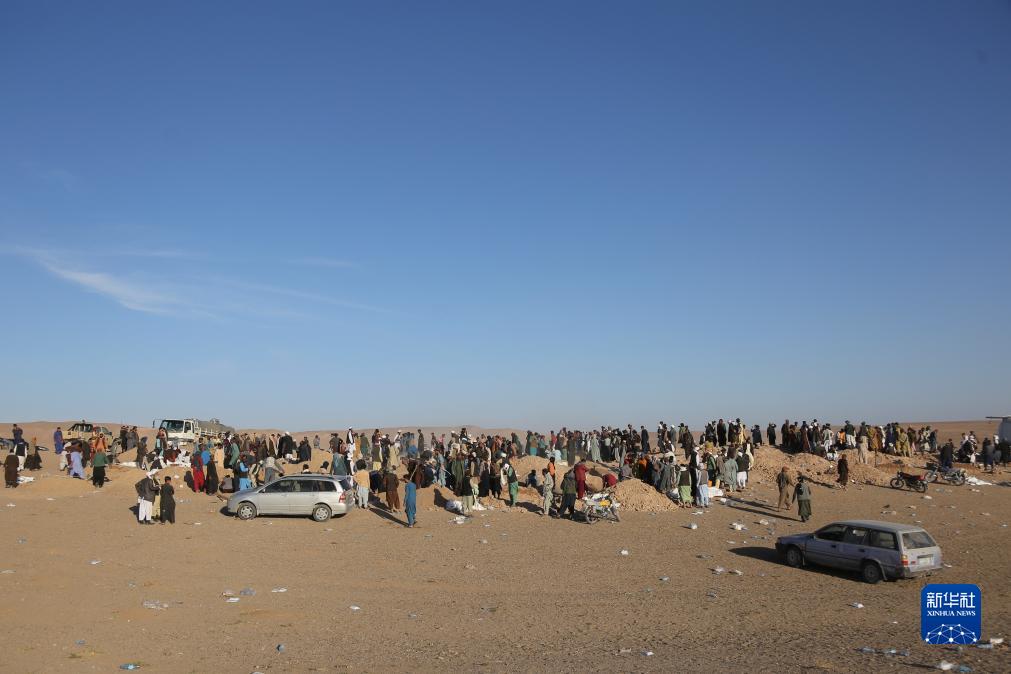 10月9日,在阿富汗西部赫拉特省津達詹區,民眾為悼念地震遇難者舉辦葬禮。