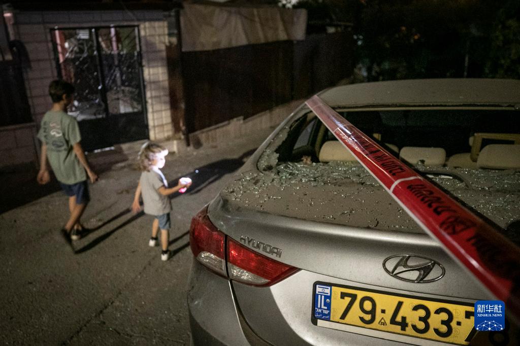 10月9日,在耶路撒冷以西的阿布高什村,一輛汽車(chē)遭到火箭彈破壞。