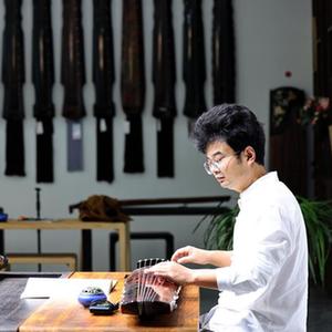 10月9日,河南省蘭考縣堌陽(yáng)鎮徐場(chǎng)村的斫琴師徐亞沖在彈奏古琴。