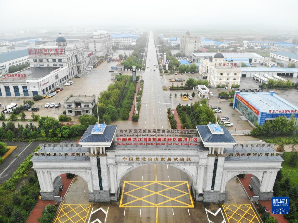 這是8月10日拍攝的中國(黑龍江)自由貿易試驗區黑河片區一角(無(wú)人機照片)。中國(黑龍江)自由貿易試驗區黑河片區被稱(chēng)為“中國最北自貿片區”。