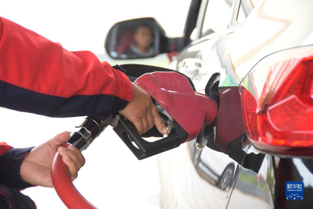 10月10日,云南省蒙自市一加油站工作人員在給汽車(chē)加油。