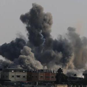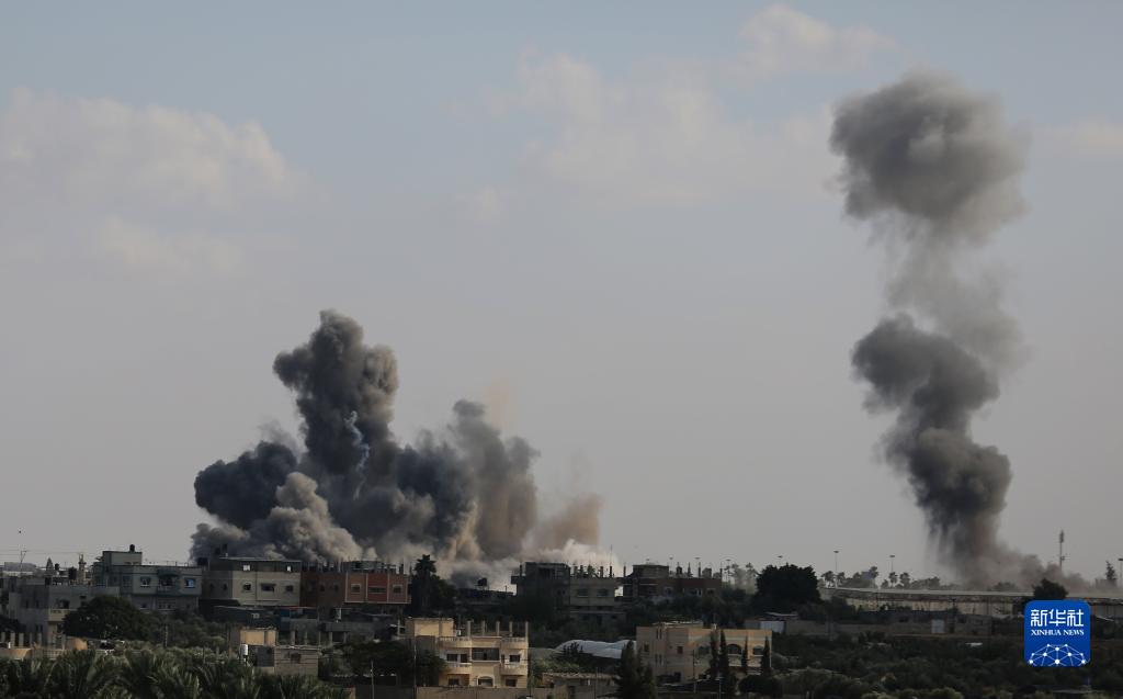 10月10日,在加沙地帶南部城市拉法,以色列空襲后升起濃煙。