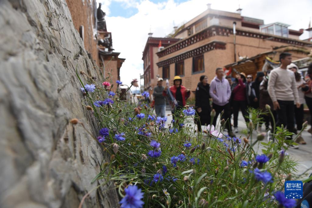 10月10日,游客在四川甘孜藏族自治州理塘縣游覽。
