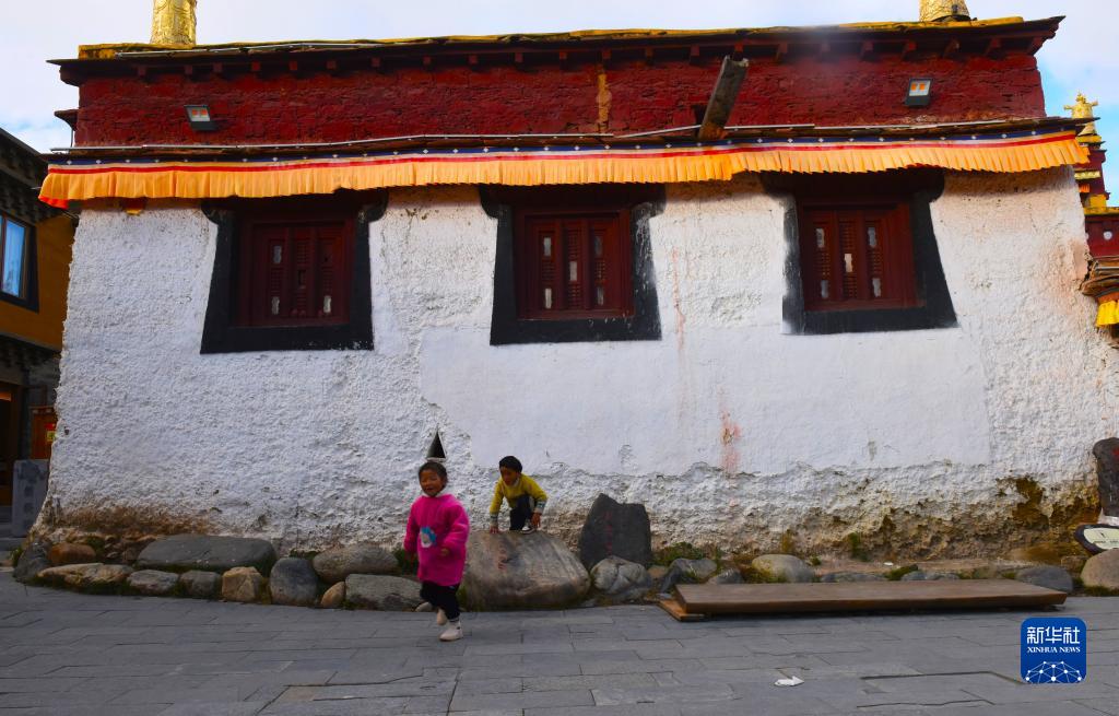 10月10日,在四川甘孜藏族自治州理塘縣,兒童在街頭玩耍。