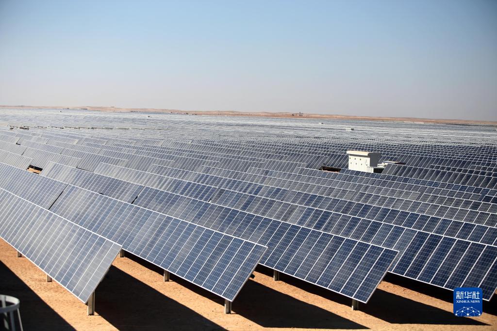 這是2019年3月18日在埃及南部阿斯旺拍攝的特變電工承建的本班光伏產(chǎn)業(yè)園。