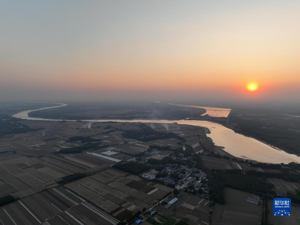 山東聊城位山灌區黃河位山閘附近景色(10月10日攝,無(wú)人機照片)。