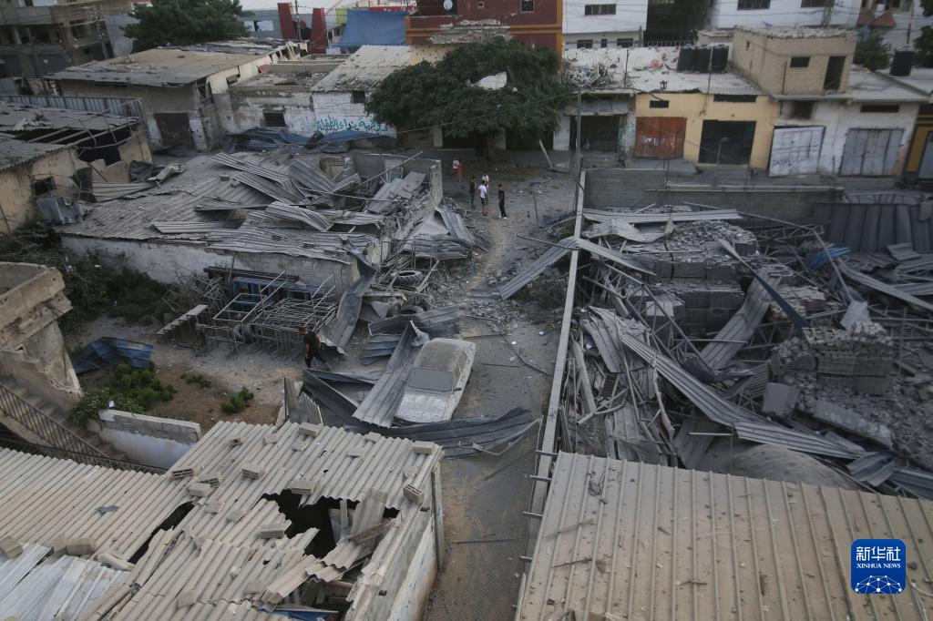 這是10月11日在加沙地帶南部城市拉法拍攝的被以色列空襲炸毀的建筑。