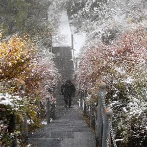 金秋時(shí)節,甘肅省張掖市肅南裕固族自治縣境內的祁連山脈迎來(lái)一場(chǎng)降雪,云杉翠柏與皚皚白雪相映成趣,美不勝收。