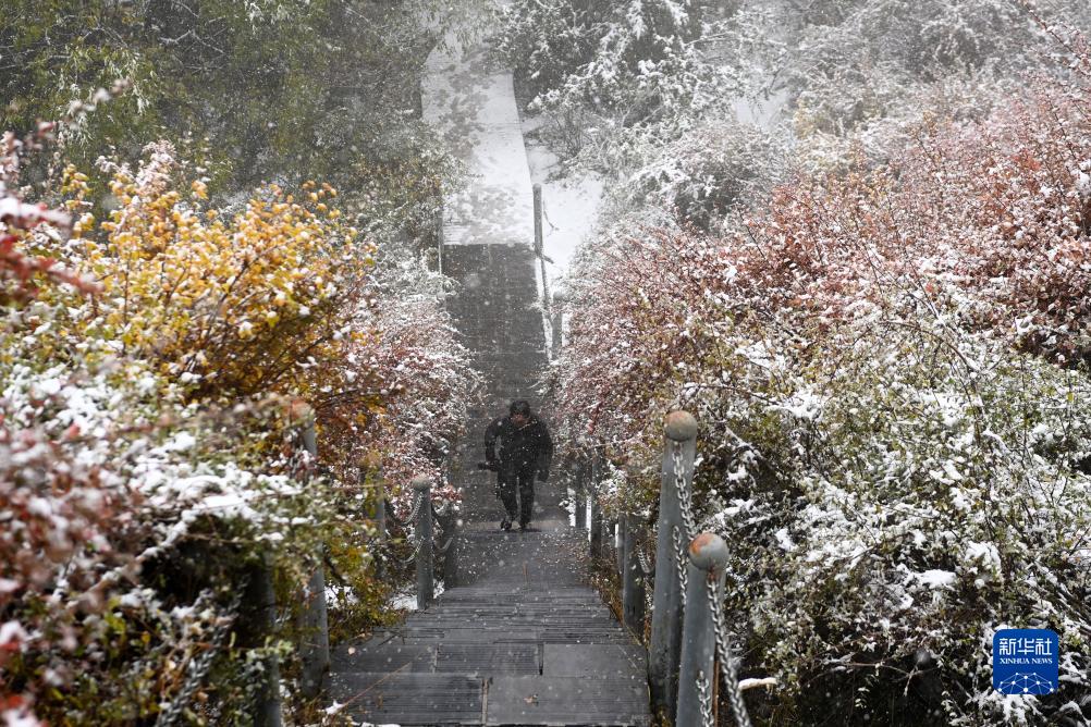 金秋時(shí)節,甘肅省張掖市肅南裕固族自治縣境內的祁連山脈迎來(lái)一場(chǎng)降雪,云杉翠柏與皚皚白雪相映成趣,美不勝收。