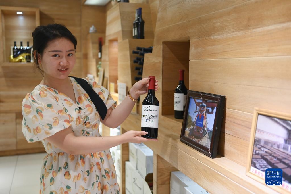 7月18日,義烏國際商貿城店員展示通過(guò)“義新歐”中歐班列進(jìn)口的西班牙紅酒。
