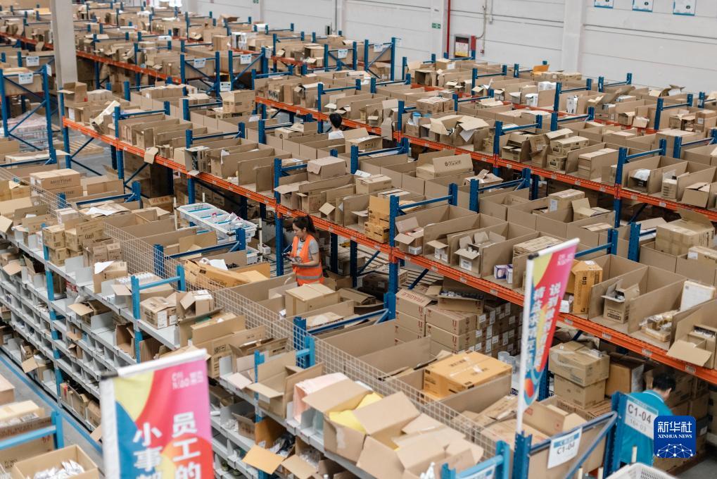 7月19日,工作人員在浙江義烏菜鳥(niǎo)保稅區工作。