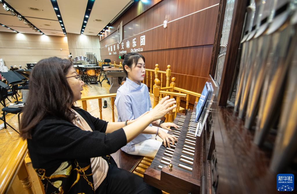 9月14日,在位于北京的中央音樂(lè )學(xué)院,沈凡秀教授(左)指導管風(fēng)琴專(zhuān)業(yè)學(xué)生練習莫扎特的《F小調幻想曲 K.608》。