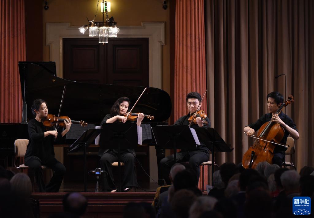 8月10日,在奧地利維也納,來(lái)自中央音樂(lè )學(xué)院的演奏者在“聽(tīng)見(jiàn)當代中國”——中國當代作曲家室內樂(lè )作品音樂(lè )會(huì )演奏曲目《風(fēng)信子》。