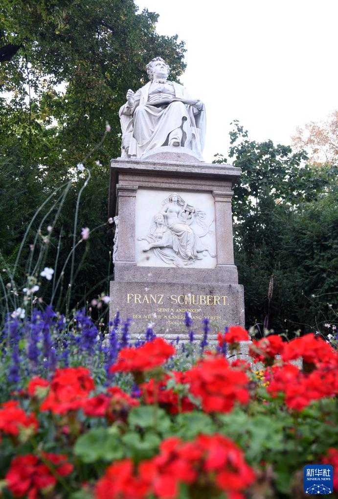 這是10月2日在奧地利維也納拍攝的舒伯特紀念碑。