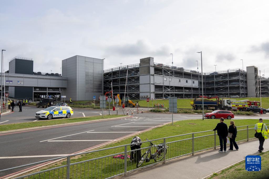 這是10月11日在英國倫敦盧頓機場(chǎng)拍攝的失火停車(chē)場(chǎng)。