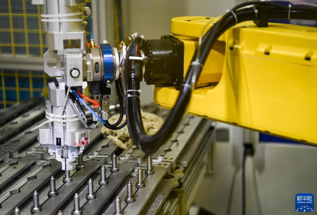 10月11日在位于重慶市永川區的重慶紅江機械有限責任公司機械加工車(chē)間拍攝的自動(dòng)化生產(chǎn)作業(yè)現場(chǎng)。