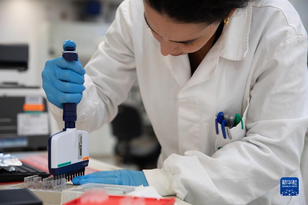 10月11日,一名科研人員在位于巴西圣保羅州克拉維紐斯的隆平巴西分子生物實(shí)驗室內工作。