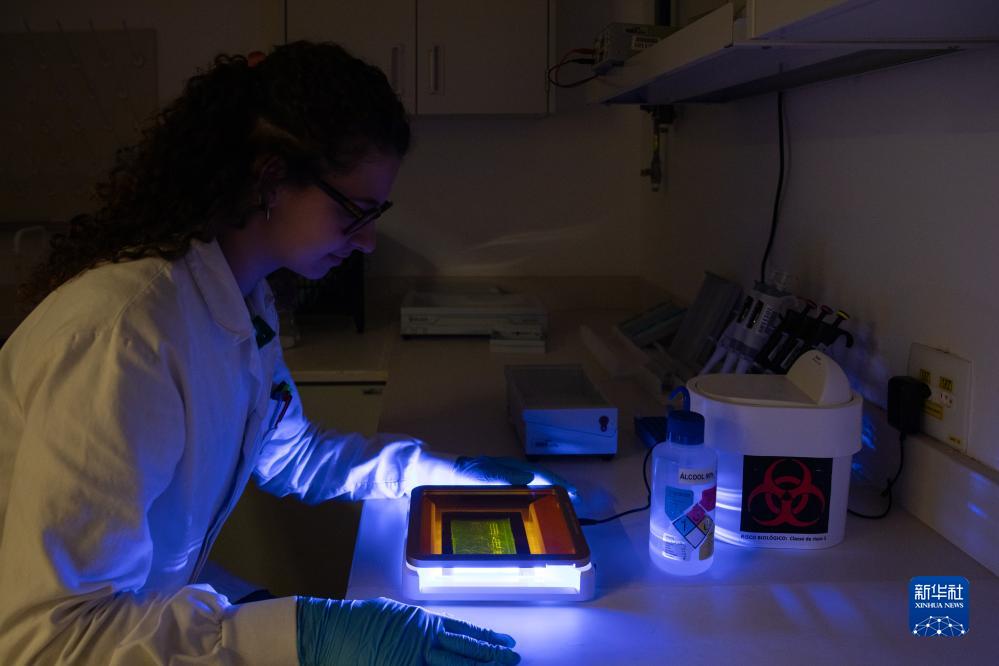 10月11日,一名科研人員在位于巴西圣保羅州克拉維紐斯的隆平巴西分子生物實(shí)驗室內工作。
