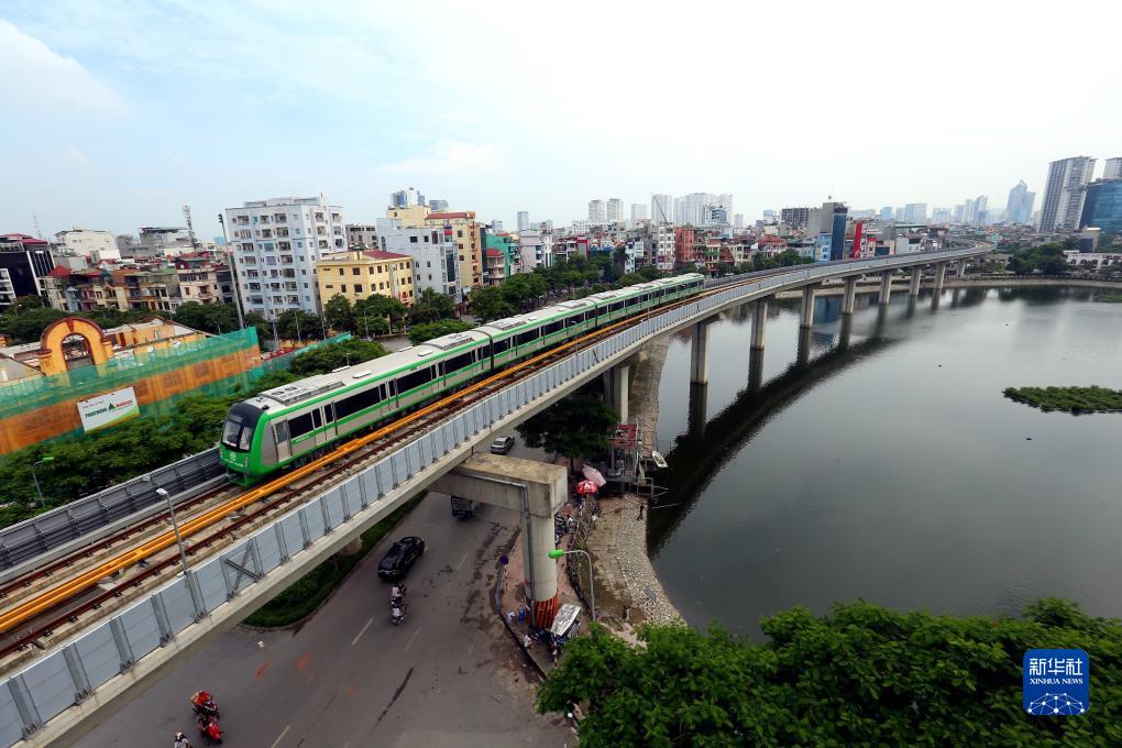 這是2018年8月1日在越南河內拍攝的熱滑測試中的輕軌列車(chē)。河內吉靈-河東線(xiàn)輕軌由中國中鐵六局集團有限公司承建,是中越兩國共建“一帶一路”的標志性項目。