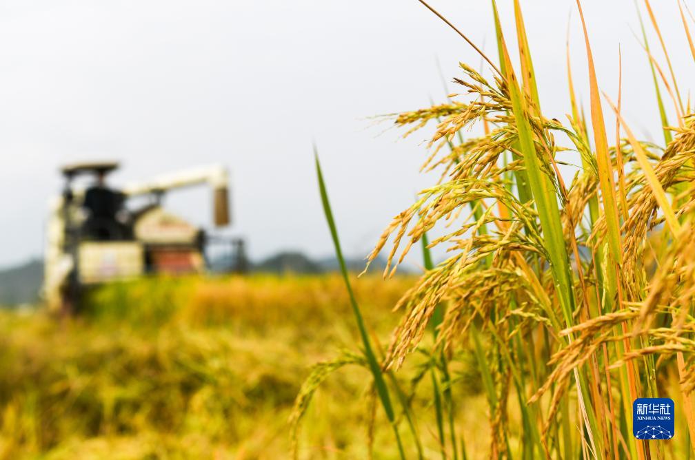 10月12日,在湖南省永州市道縣壽雁鎮芽洞村,農民駕駛農機收割晚稻。
