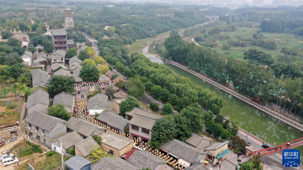 這是10月12日拍攝的石家莊市鹿泉區土門(mén)關(guān)驛道小鎮景色(無(wú)人機照片)。