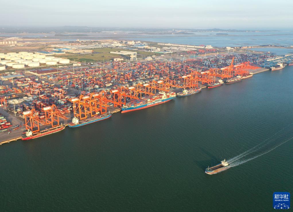 10月3日拍攝的欽州港碼頭(無(wú)人機照片)。