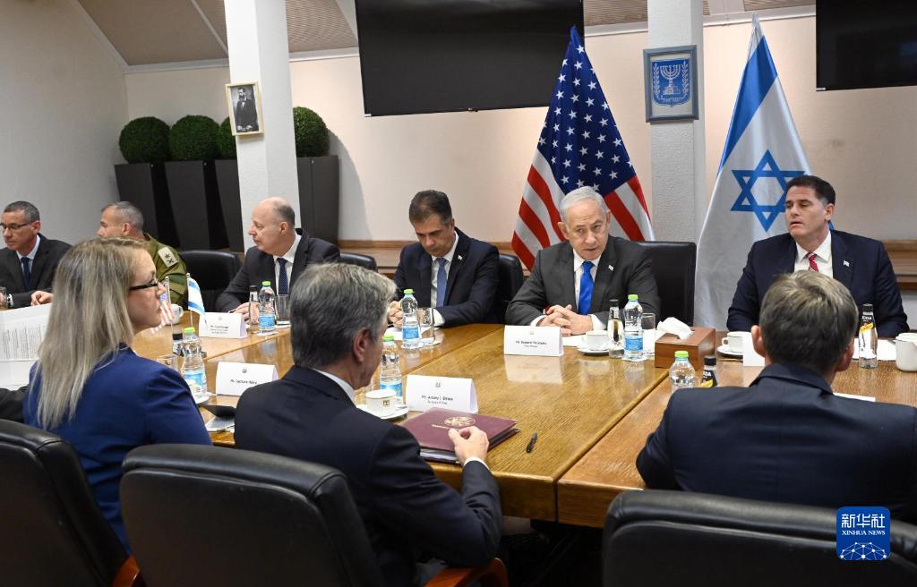 10月12日,訪(fǎng)問(wèn)以色列的美國國務(wù)卿布林肯(前,中)在特拉維夫與以色列總理內塔尼亞胡舉行會(huì )晤。
