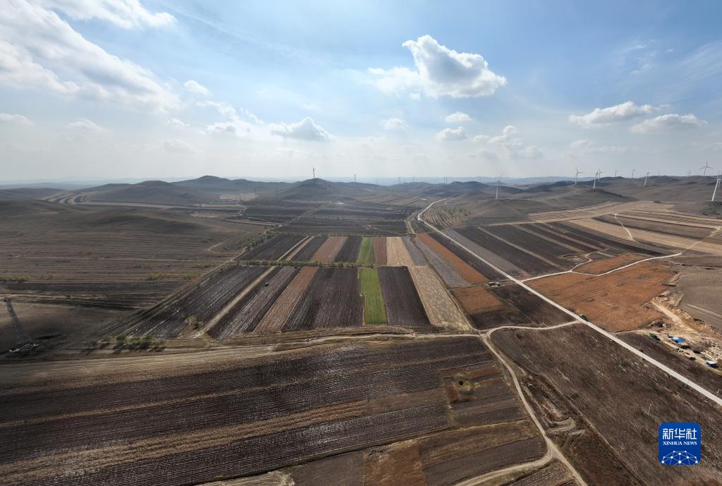 河北省沽源縣白土窯鄉藜麥種植園區(10月12日攝,無(wú)人機照片)。