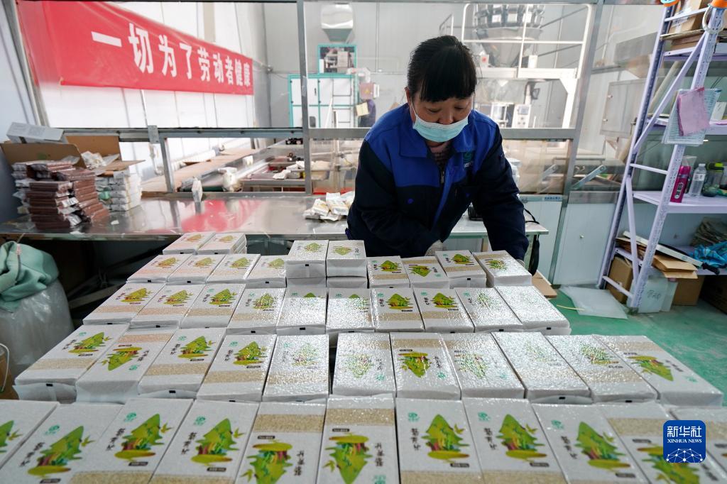10月12日,河北省沽源縣一家藜麥加工企業(yè)的工人在整理包裝好的藜麥。