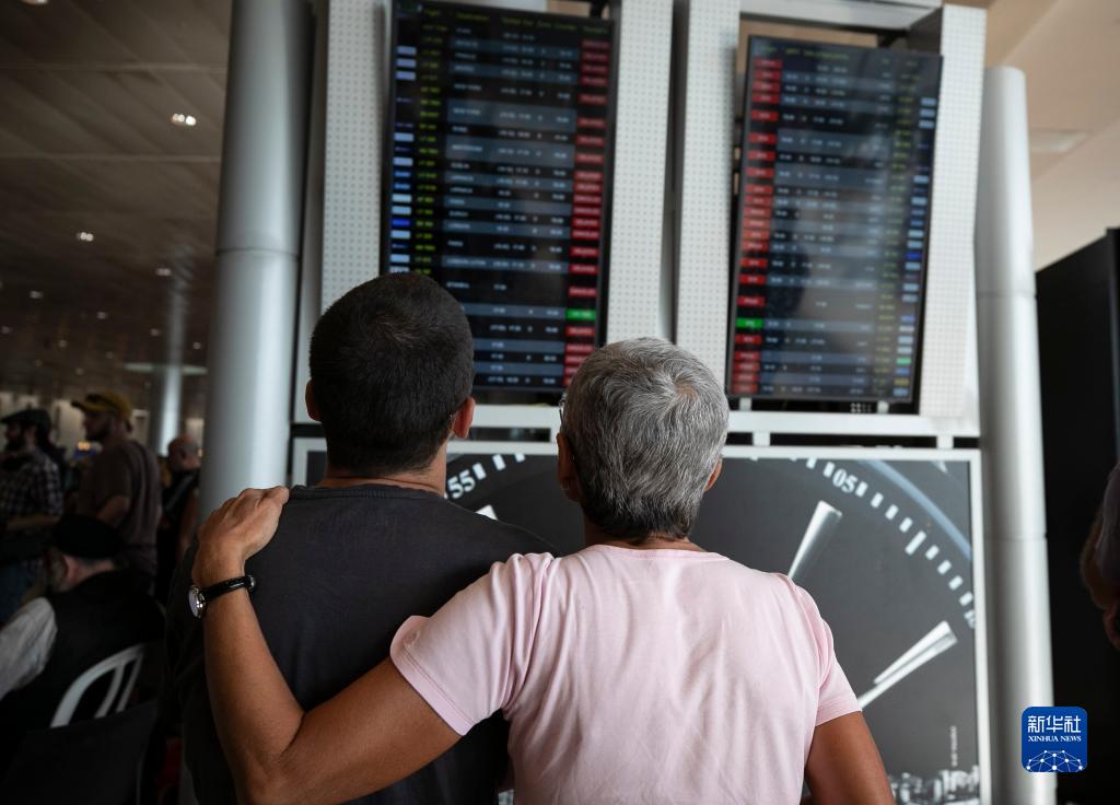 10月12日,在以色列特拉維夫附近的本-古里安國際機場(chǎng),旅客查看航班信息。