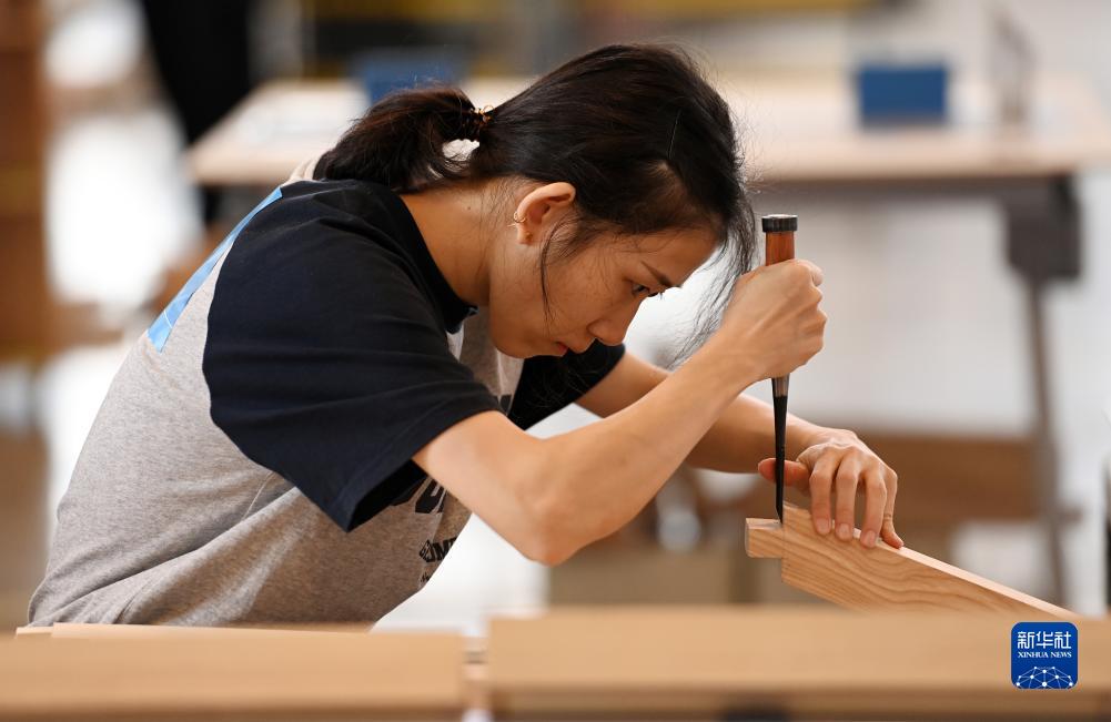 9月17日,參賽選手在中國第二屆職業(yè)技能大賽上參加木工項目比賽。